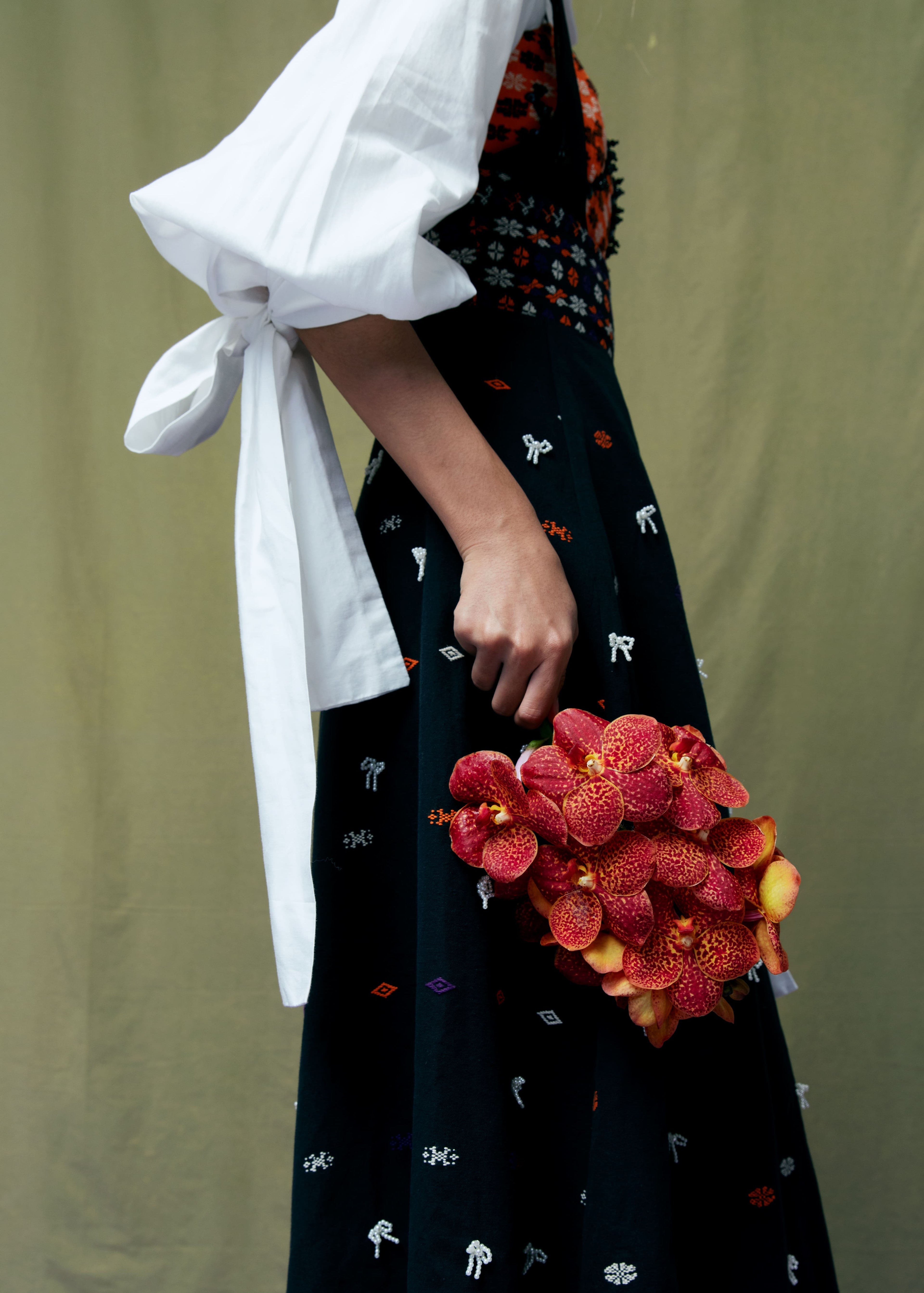 Through STUDIO JEJE’s signature dark tones layered with the vibrant, playful hues of traditional NTT weaving, Moeri reflects the dualities of life itself: festivity and stillness, joy and sorrow, openness and mystery. Each contrast exists in balance, just as it does within human experience.